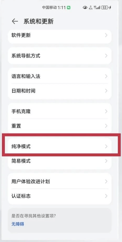 在“系统和更新”界面中,找到"纯净模式"或类似的功能选项。